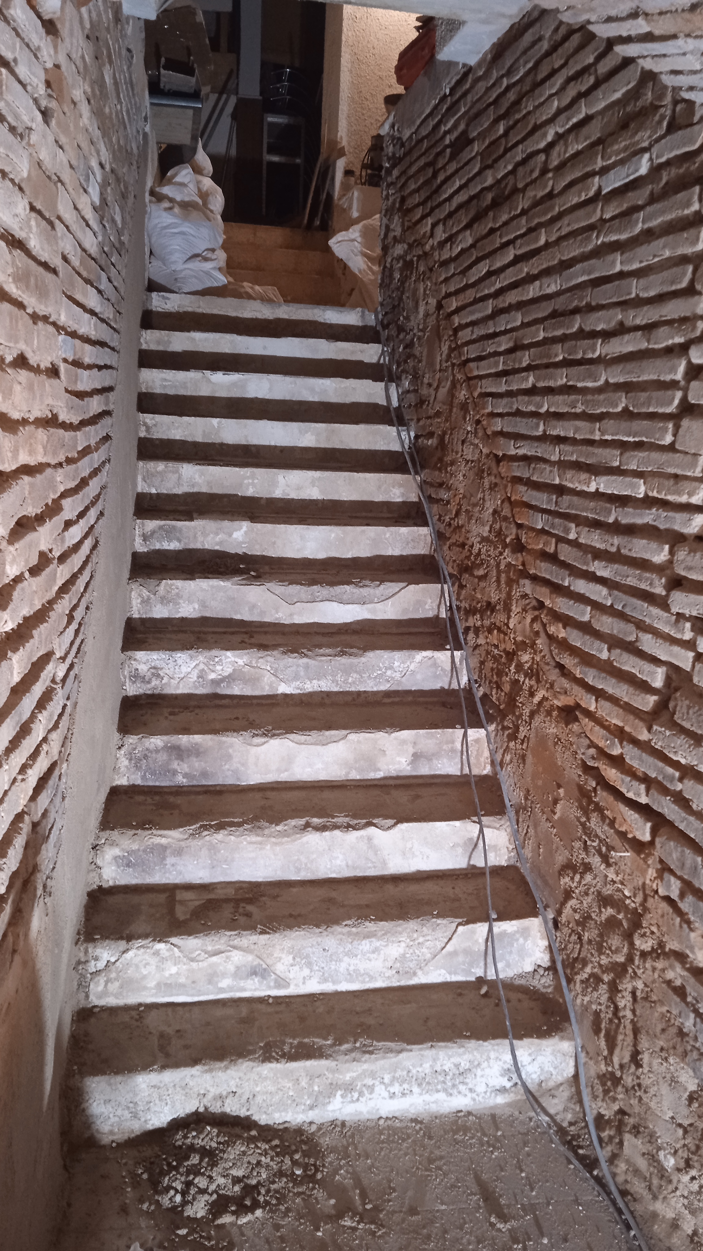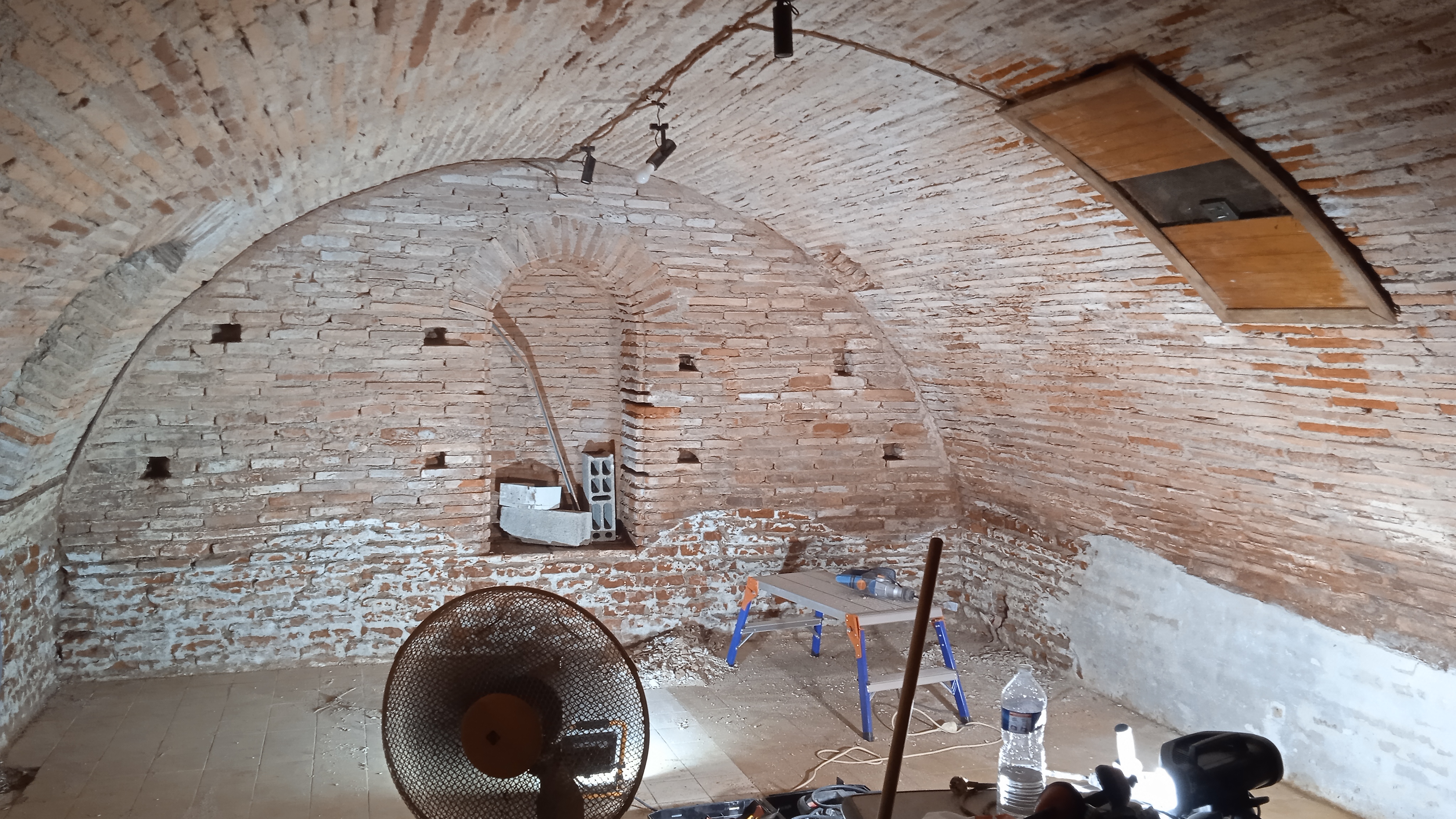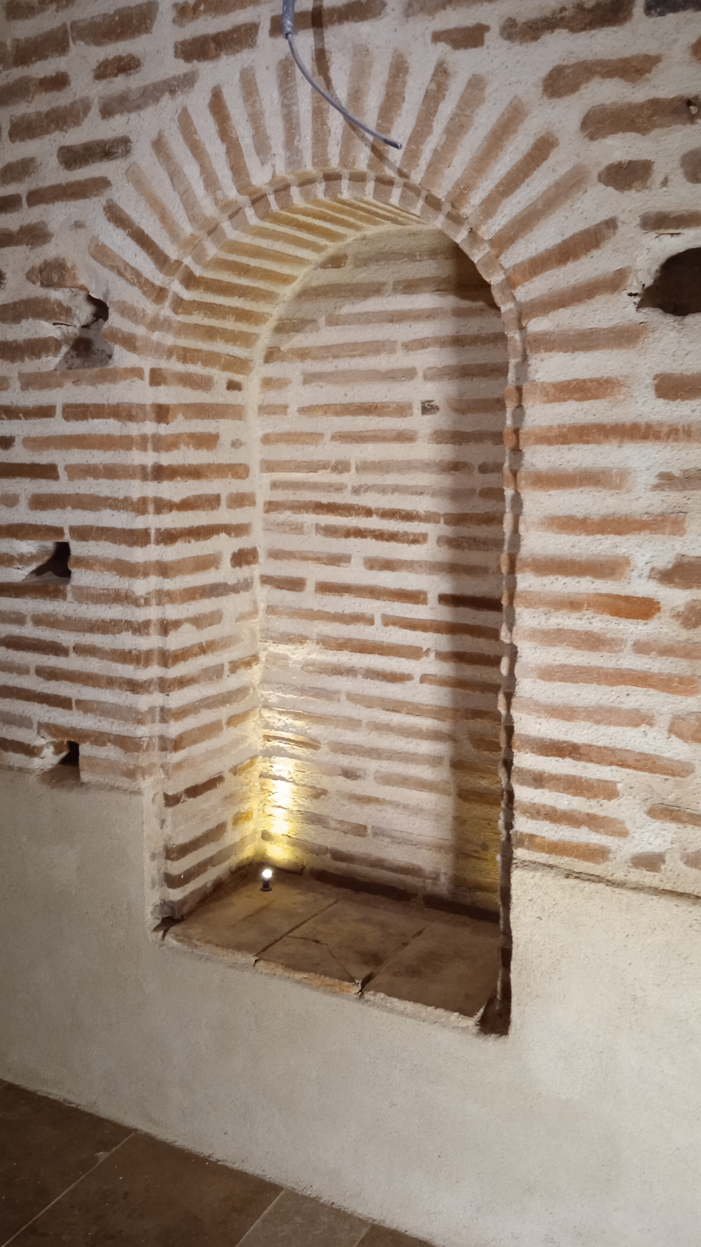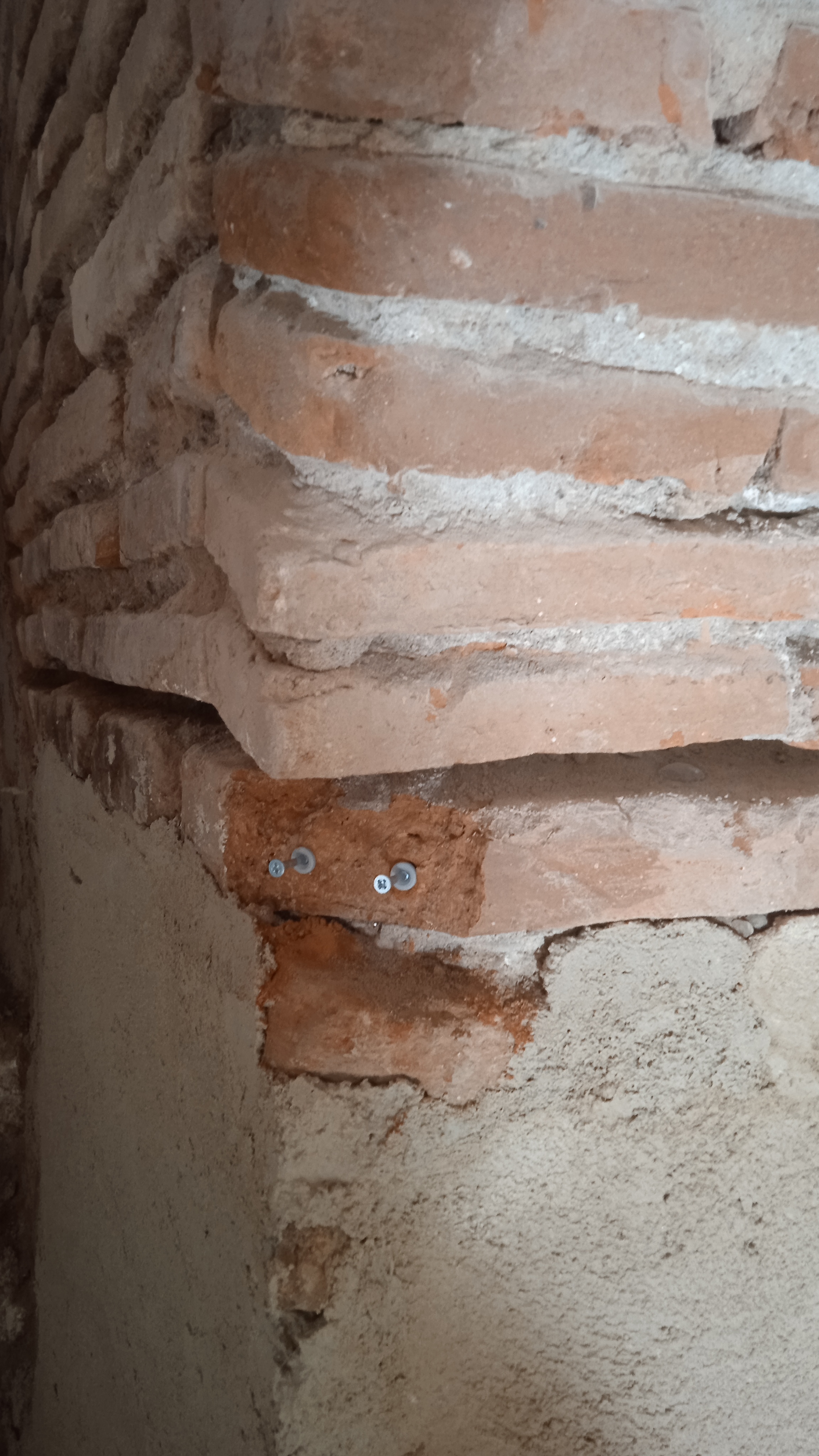 Nettoyage des briques et traitement. Réparation des briques endommagées(alcôves). Rejointoiement traditionnel avec mélange chaux blanche NHL et sable roux.