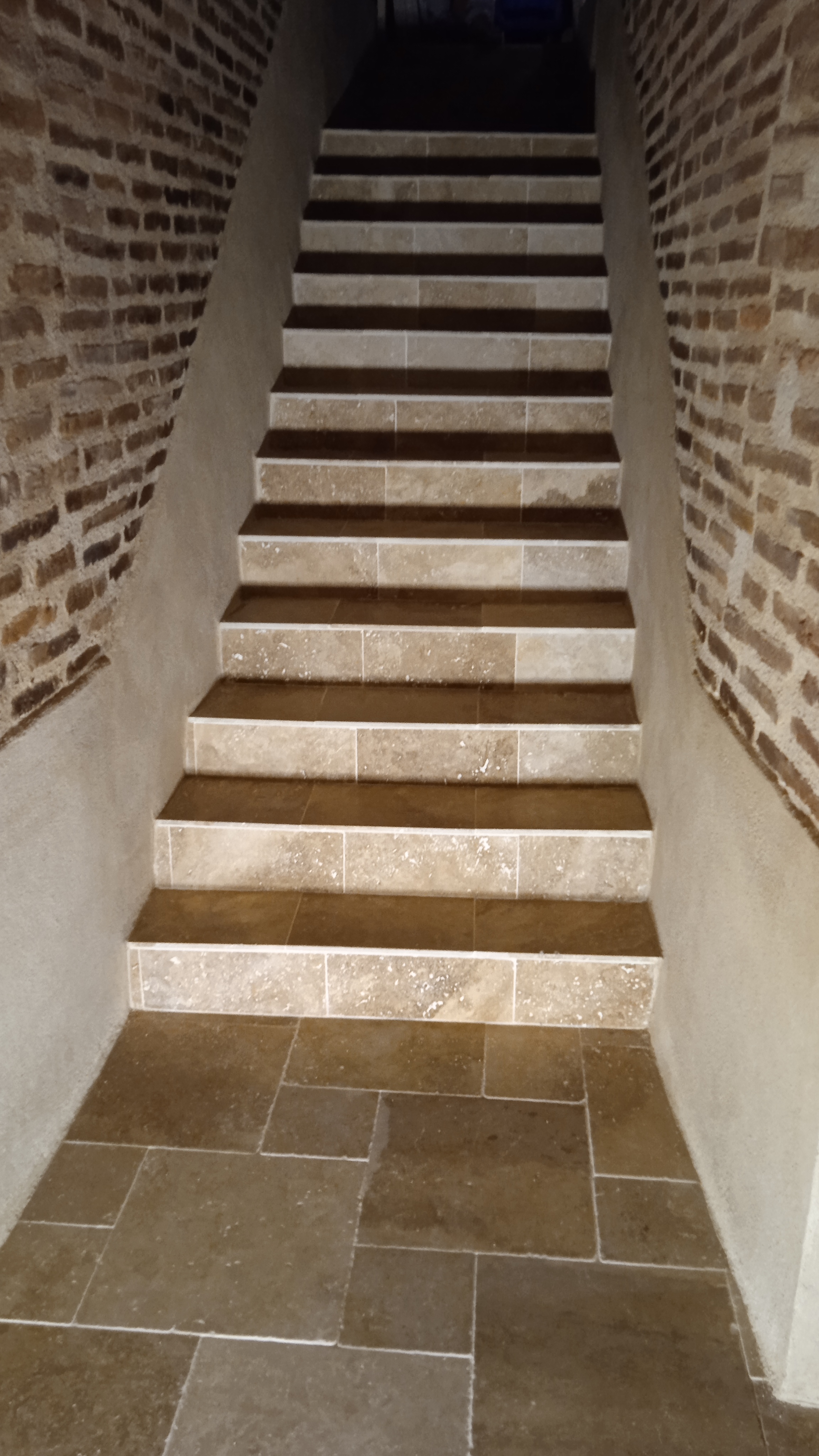 Pose de travertin 4 formats en opus romain.